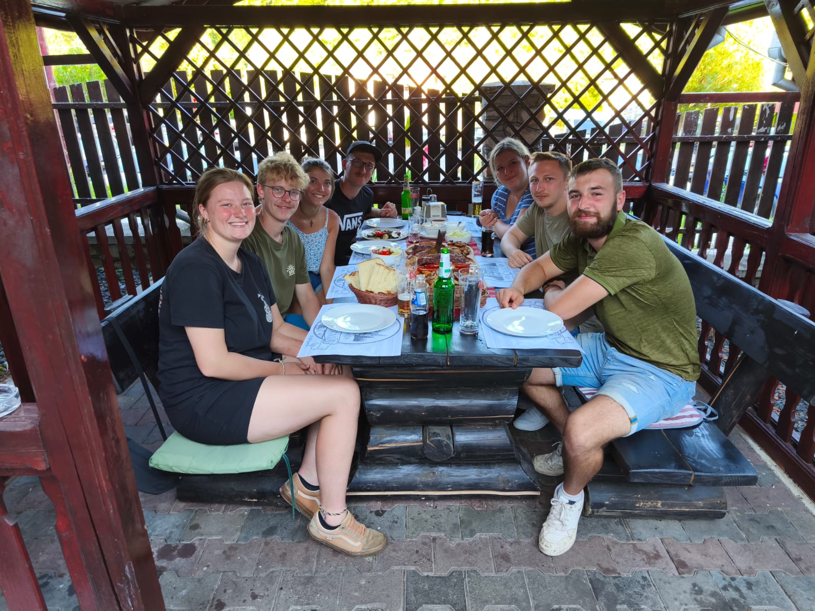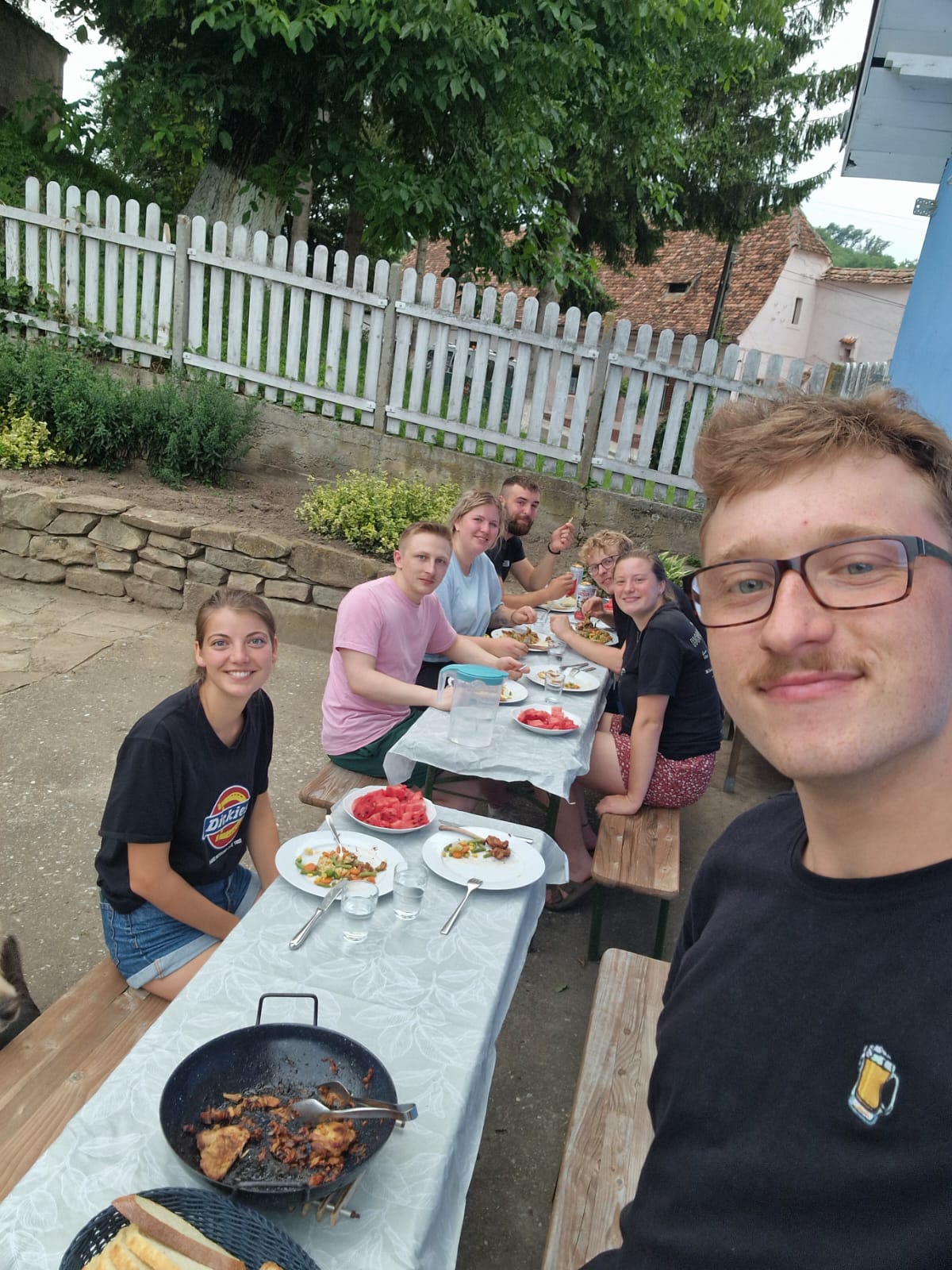 Für unser leibliches Wohl sorgten unsere Gastgeber, die uns täglich mit köstlichem rumänischem Essen versorgten. In den letzten beiden Tagen nahmen wir uns Zeit, die Umgebung zu erkunden: Wir besuchten ein Roma-Lager, was uns einen tiefen Eindruck über die noch spürbare Armut vermittelte, besichtigten die historische Kirchenburg in Moșna und unternahmen eine Wanderung in den Karpaten.