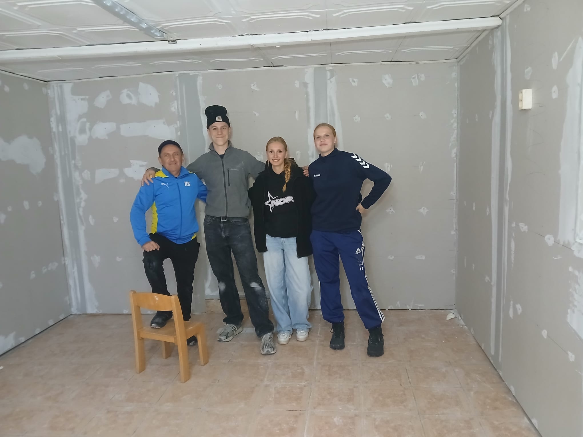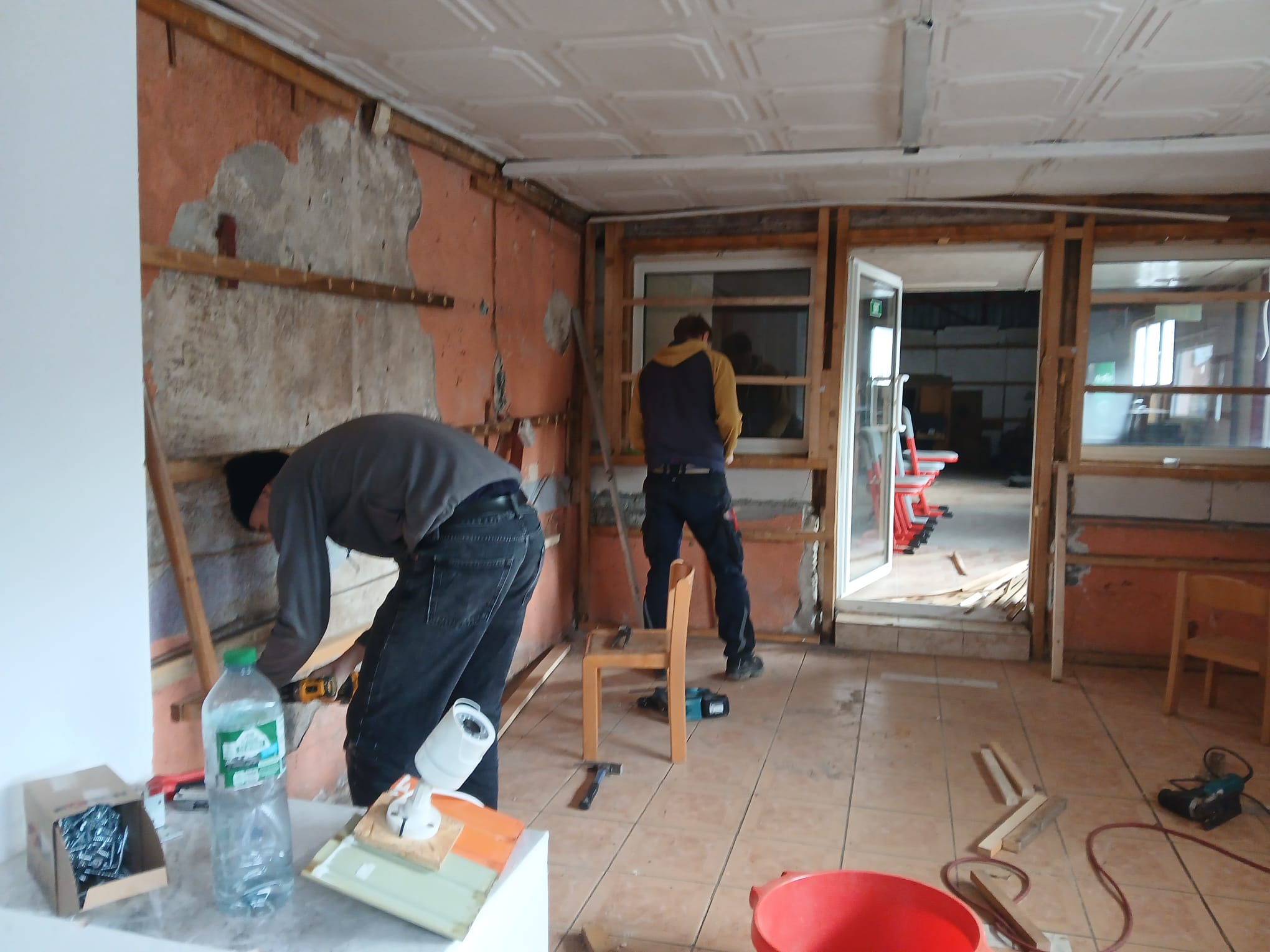 Unser erstes Projekt: Ein kleiner Bungalow, der zu einem Begegnungszentrum für Kinder werden sollte. Innen dominierten Plastikpaneele und Kälte, unser Ziel war, daraus mit Trockenbauarbeiten einen freundlichen Raum zu gestalten.